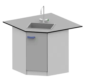 Угловой стол-мойка на металлической опорной тумбе