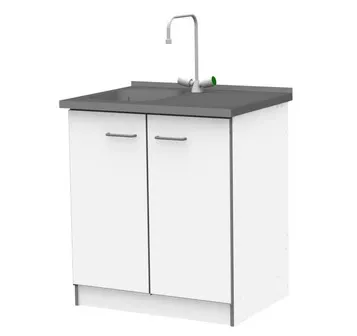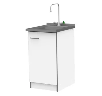 - Основа стола-мойки – опорная тумба из меламина белого цвета