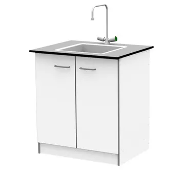 - Основа стола-мойки – опорная тумба из меламина белого цвета